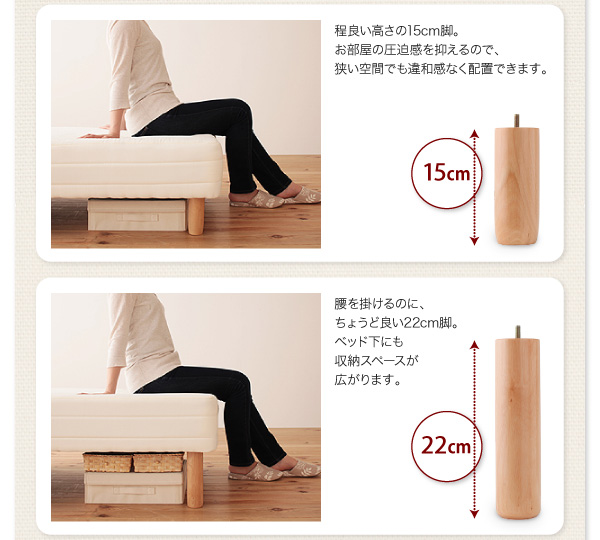 マットレスは3種類、脚も3種類(15cm、22cm、30cm)からお選びいただけます。
