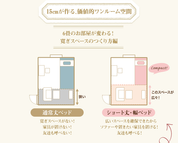 狭いスペースにも置ける、ショート丈、ショート幅の収納ベッドです!