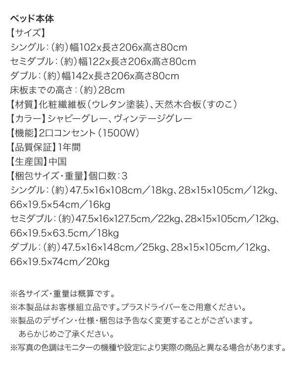 棚・コンセント付き デザインすのこベッド【スキレ】