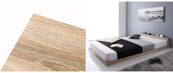 ベッド全体の高さを抑えることで、開放的で、落ち着く空間に。