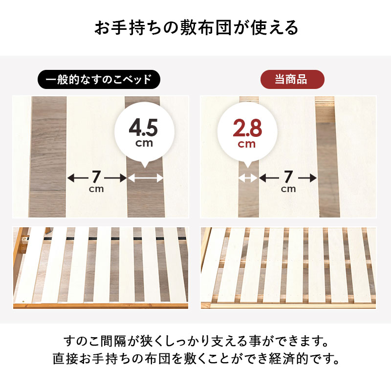 【棚・コンセント付き 天然木すのこベッド】を詳しくご紹介いたします。