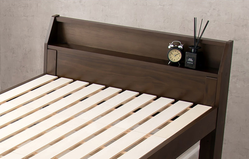 快適ベッド生活 > すのこベッド > シングルベッド > 棚・コンセント付き 床面高さが3段階に調整出来る 天然木すのこベッド ロングサイズ フレームのみ シングル