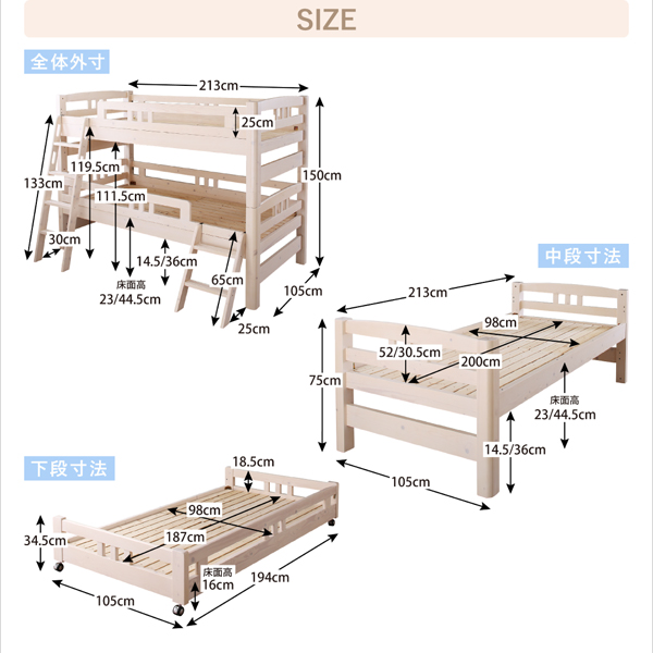 【頑丈設計のロータイプ収納式3段ベッド】を詳しくご紹介いたします。